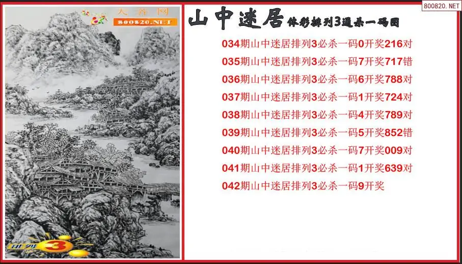 2026042期山中迷居体彩排列3通杀一码图(原创)