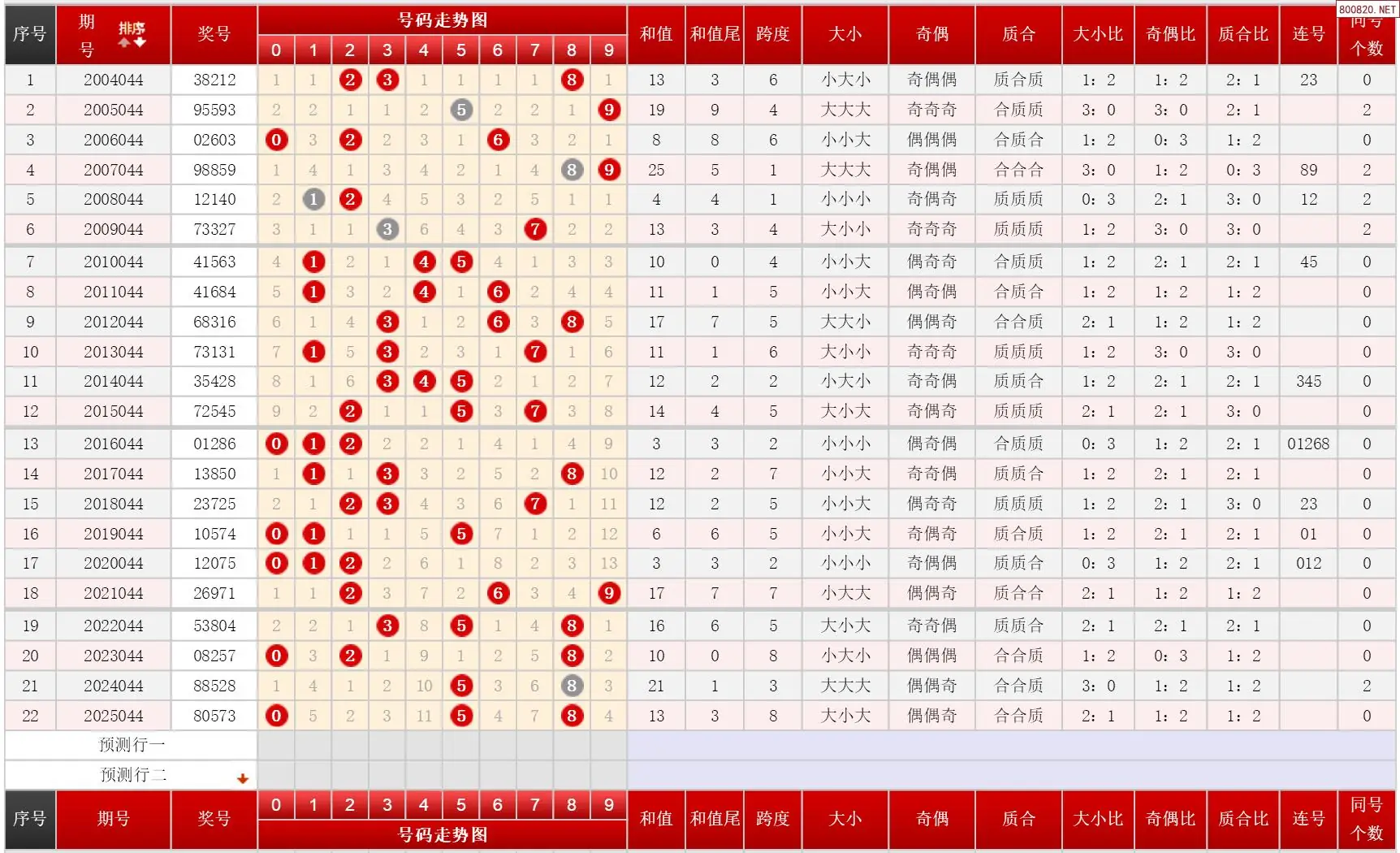 2 044期体彩P3历史同期对比图表+近期