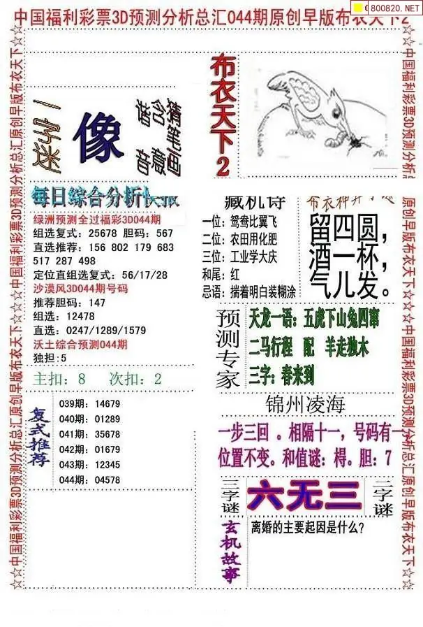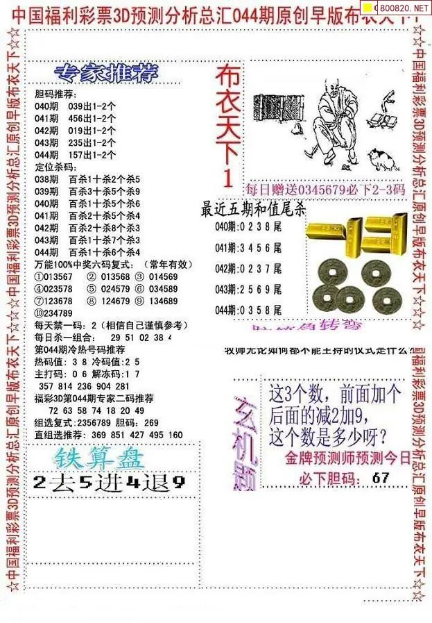 布衣图044期布衣定位杀+布衣神算图迷