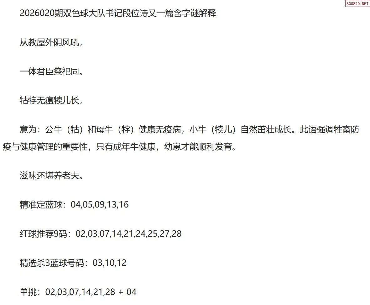 双色球第26020期大队书记最新段位诗谜又一篇