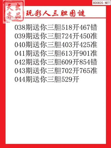 天齐原创3d图谜2026044期玩彩人胆码图