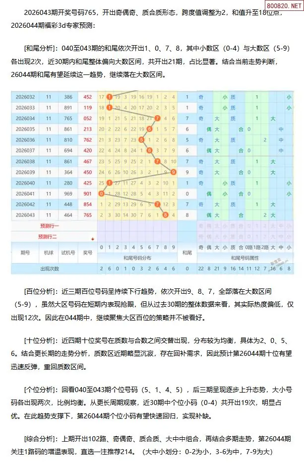 福彩3D第2026044期[玩彩高手]最准最新3d号码预测