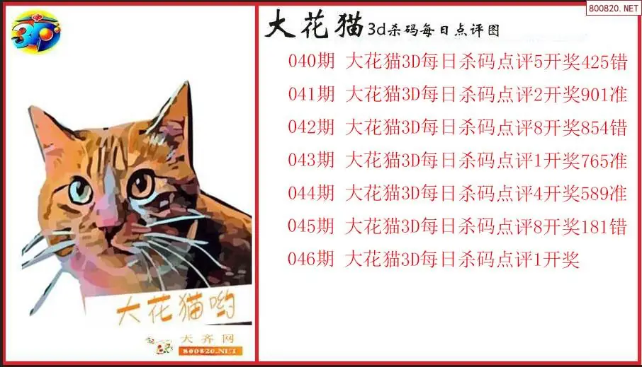 大花猫2026046期3d杀码每日点评图(原创)