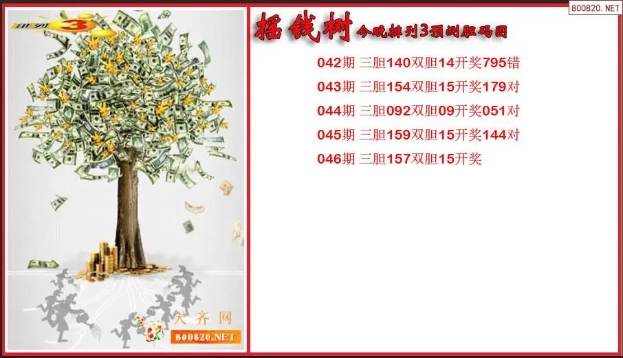 2026年摇钱树046期今晚排列3预测胆码图 (原创)