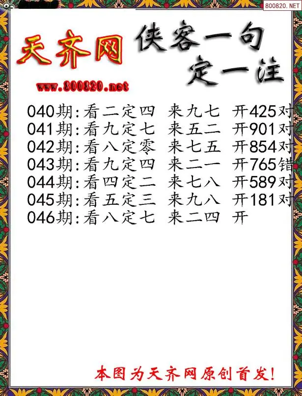 046期侠客一句3D定三码字图谜