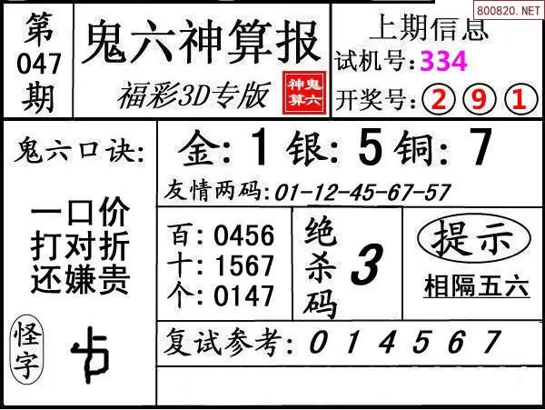 鬼六图26047期鬼六神算报+鬼六胆码图迷