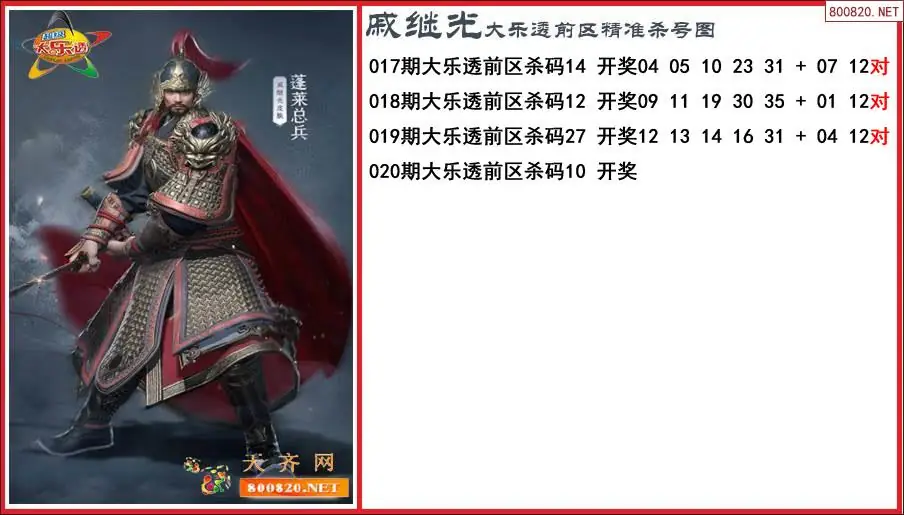 戚继光2026020期大乐透前区精准杀号图-原创