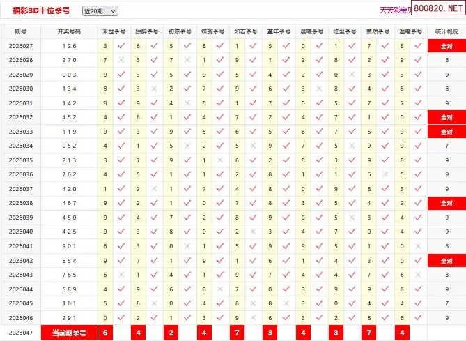 26048期彩宝贝福彩3D百十个位杀号