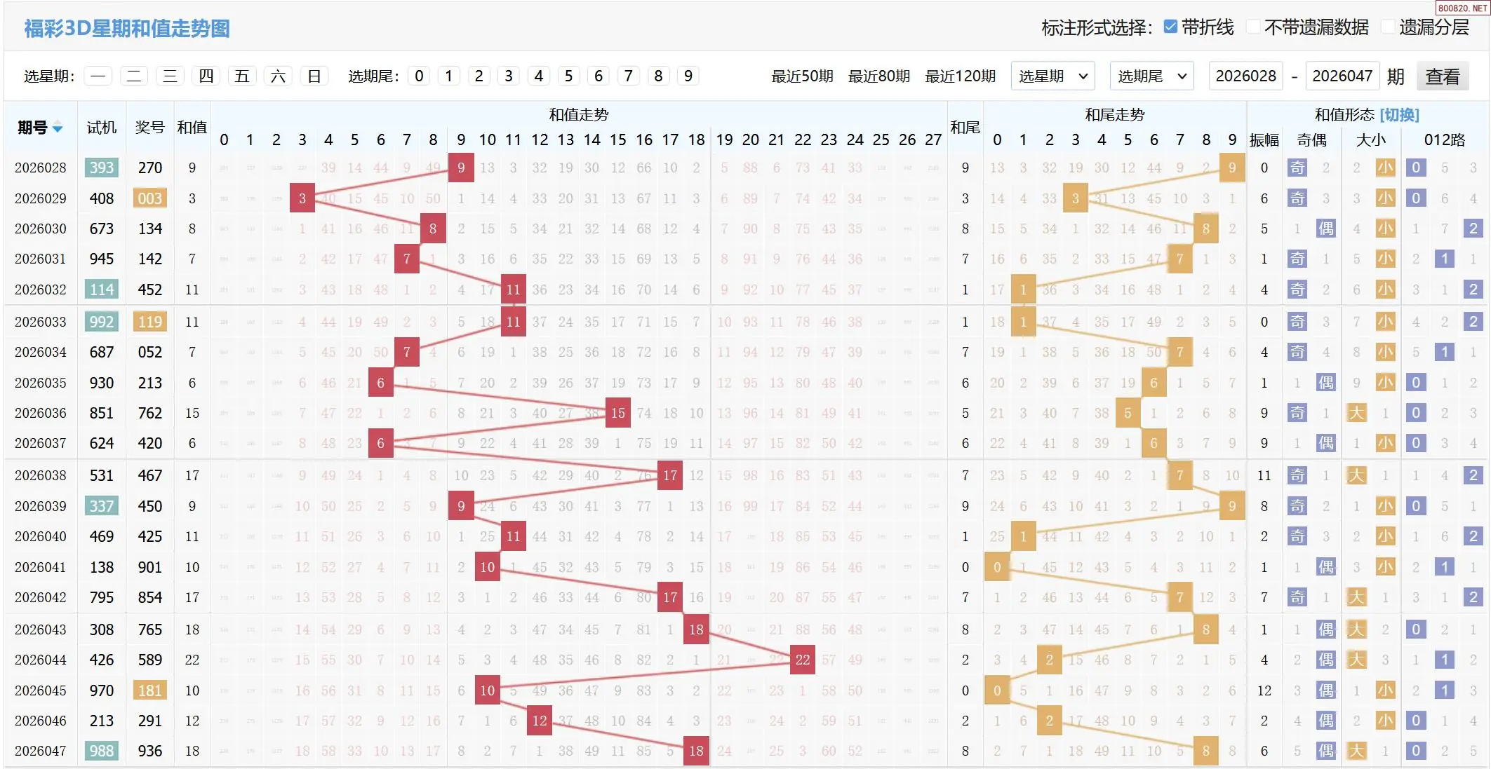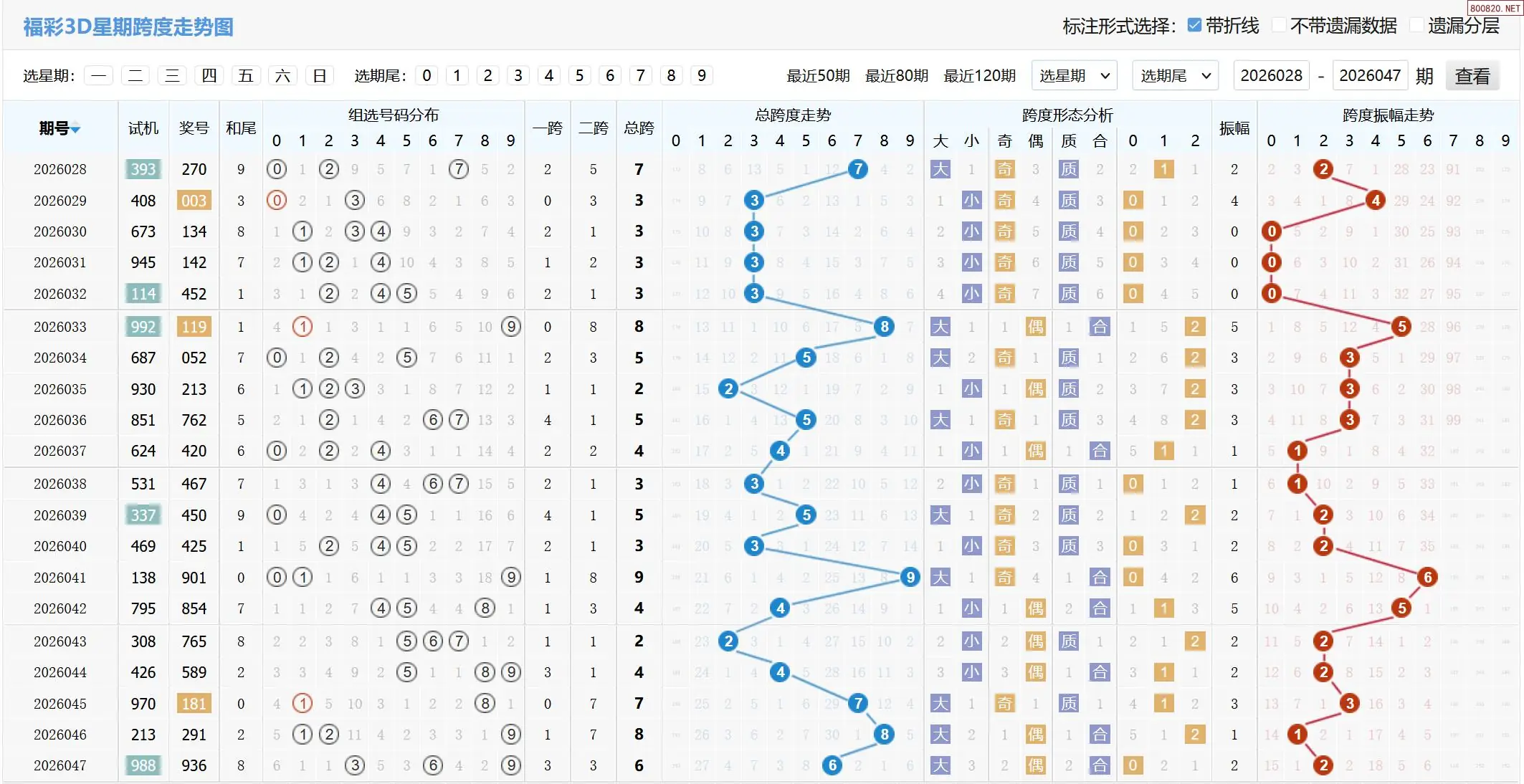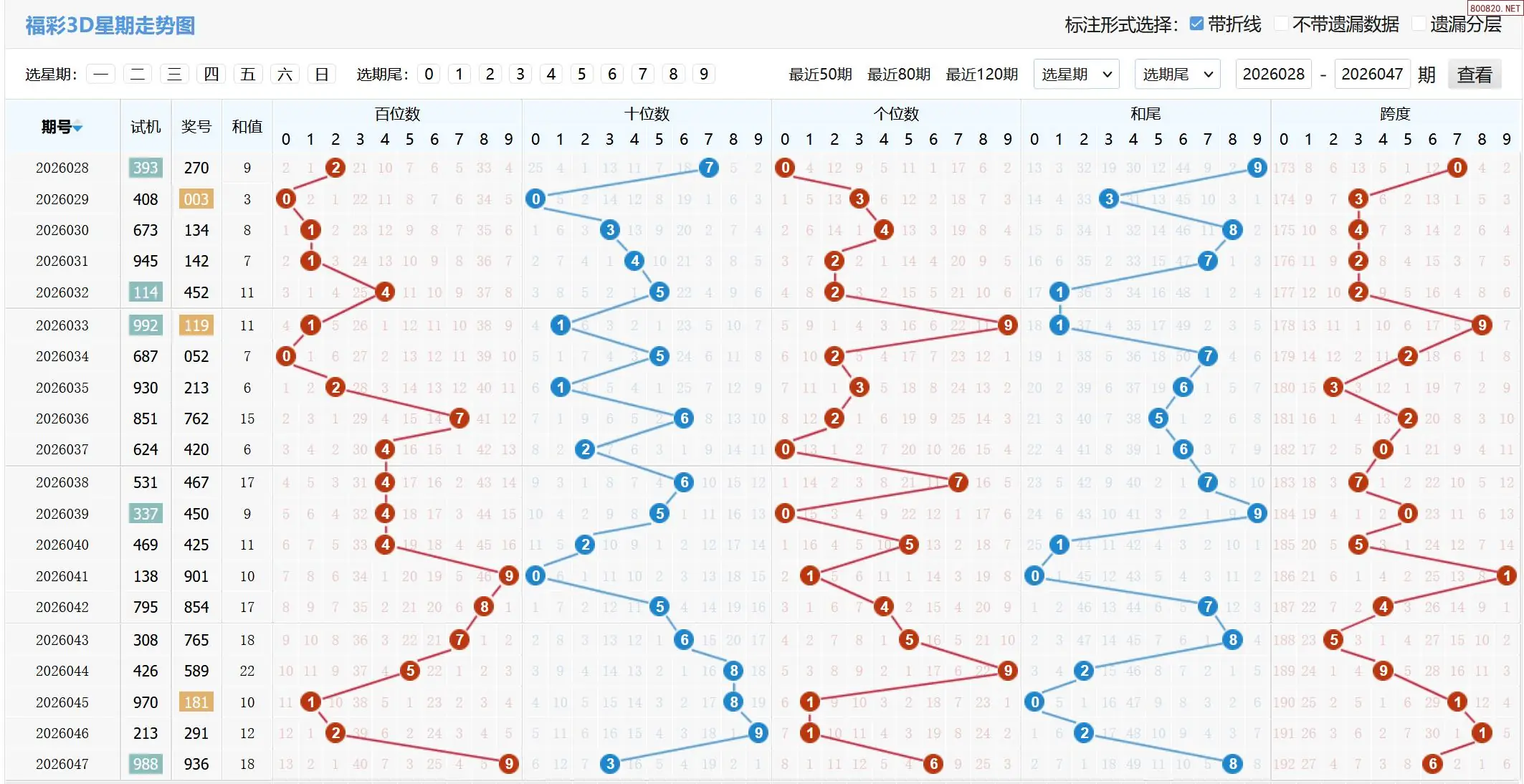 2026048期福彩3D基本走势图如下: