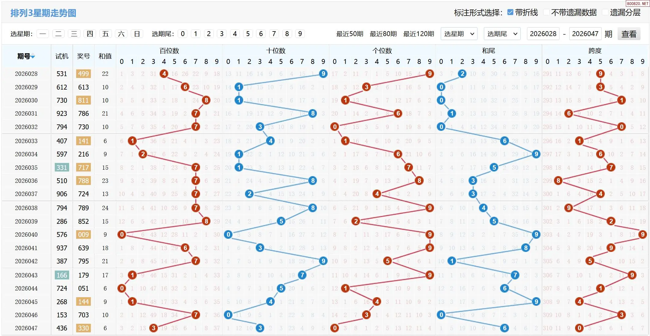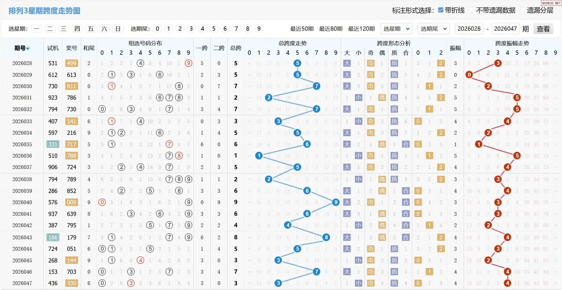 26年048期体彩P3跨度走势图如下: