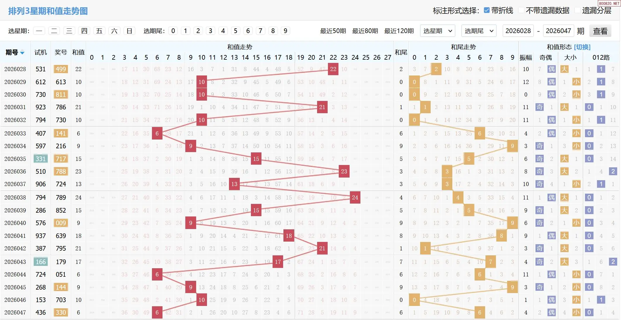 26年048期体彩P3和值和尾走势图如下: