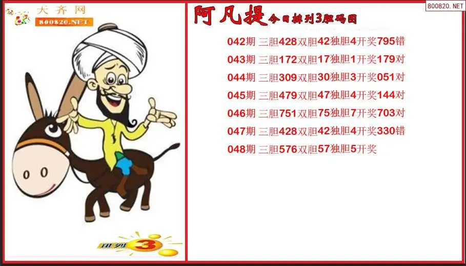 阿凡提2026048期今日排列3胆码图(原创)