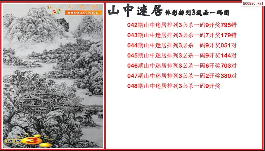 2026048期山中迷居体彩排列3通杀一码图(原创)