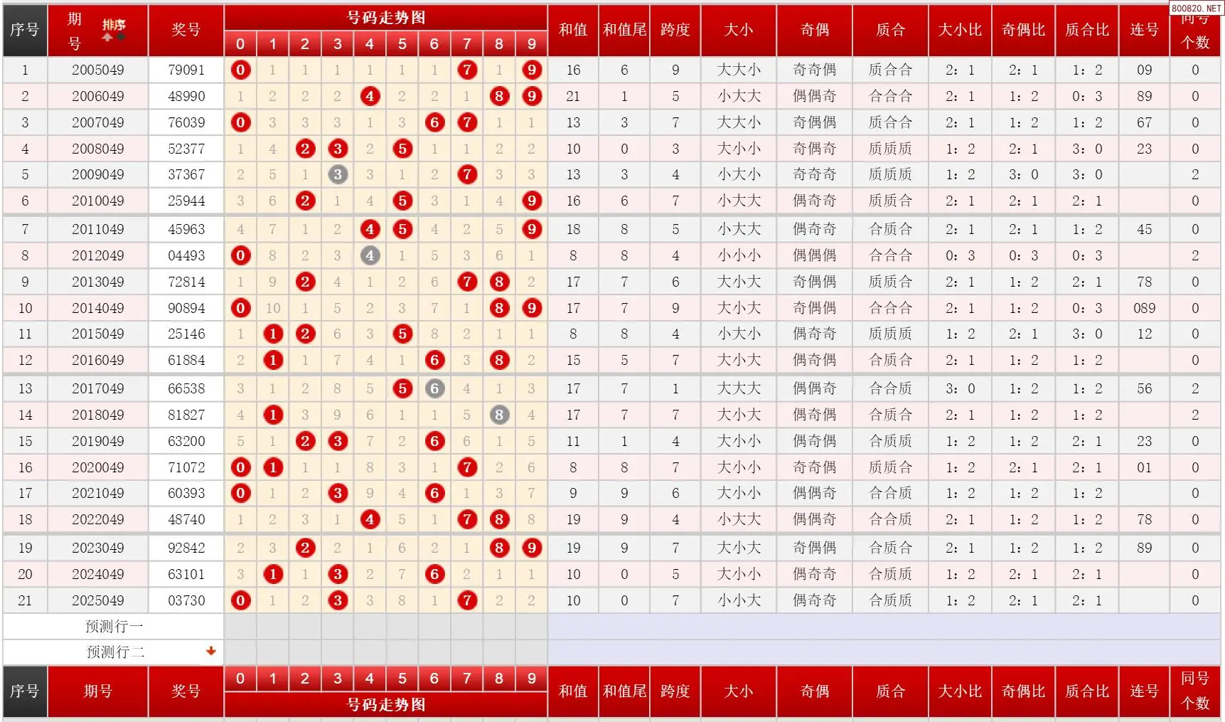 049期体彩P3历史同期对比图表+近期走势图分析