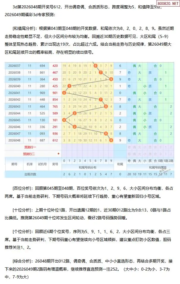 福彩3D第2026049期[玩彩高手]最准最新3d号码预测