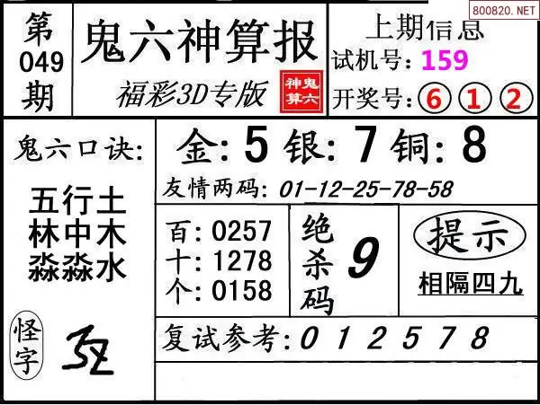 鬼六图26049期鬼六神算报+鬼六胆码图迷