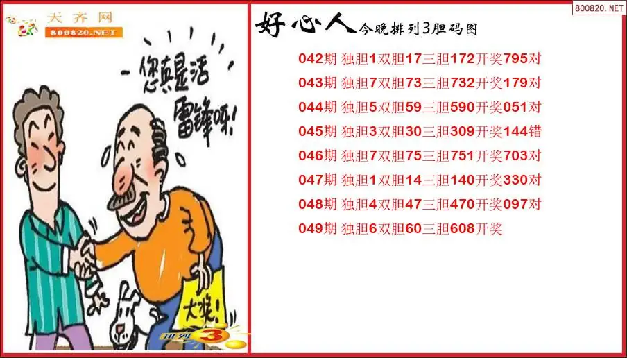 好心人2026049期今晚排列3胆码图(原创)