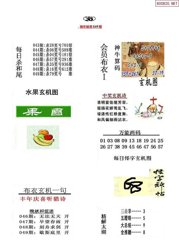 20 26049期真精华布衣123456