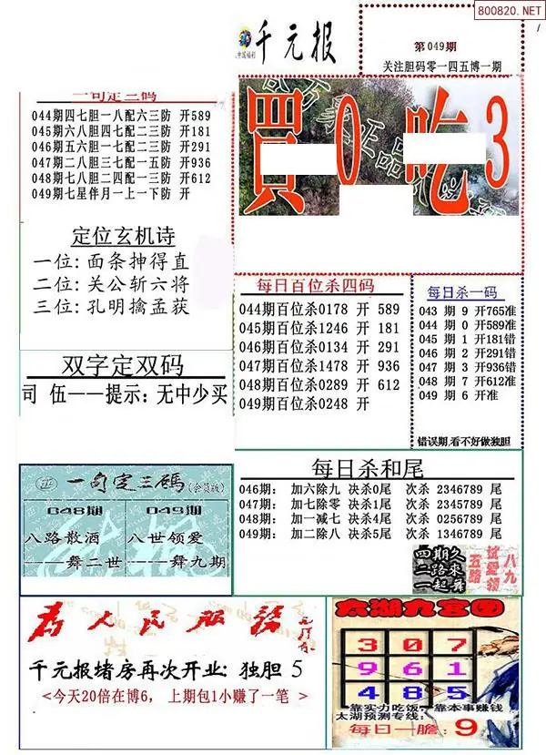 2 26年049期解太湖3d字图迷汇总彩报