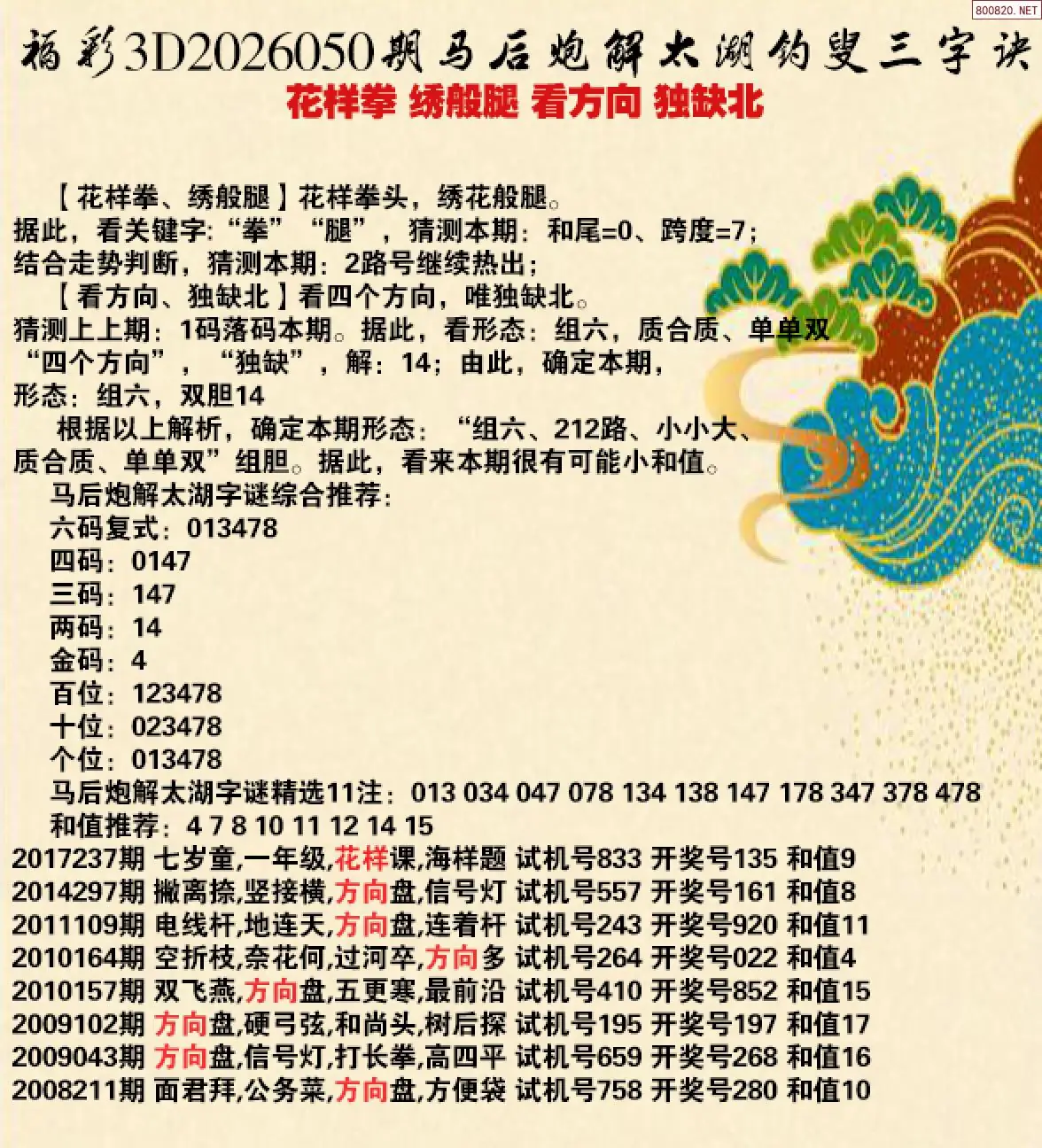 8 26年050期马前屁破解太湖玄机 花样