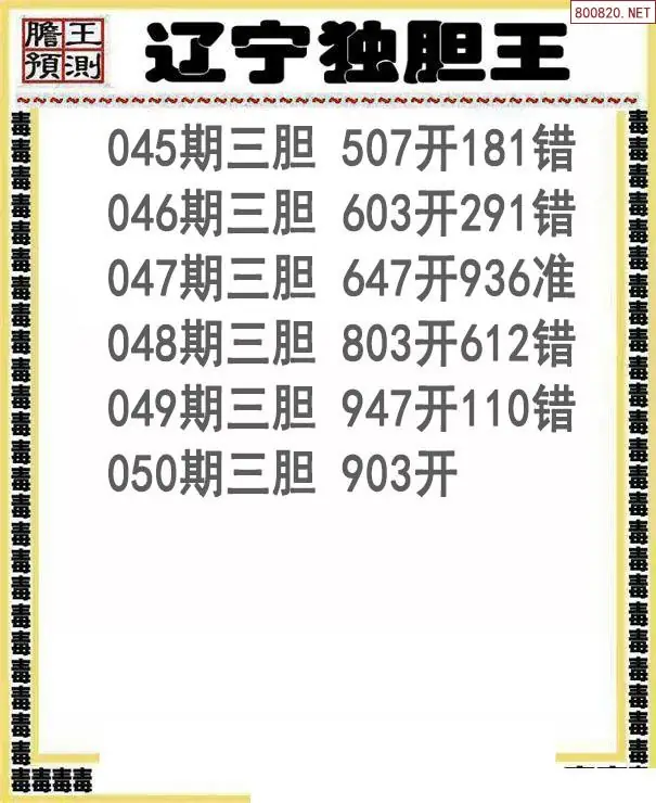26050期辽宁独胆王三胆图谜