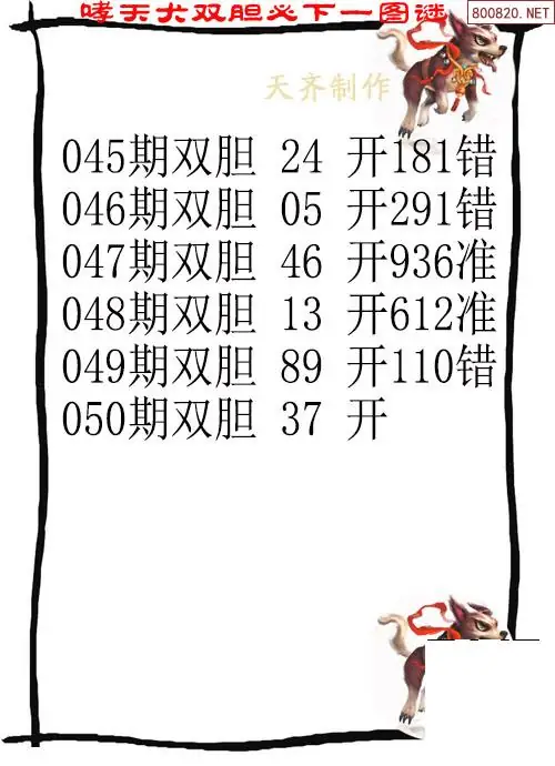 26050期哮天犬福彩3d胆码图-天齐原创