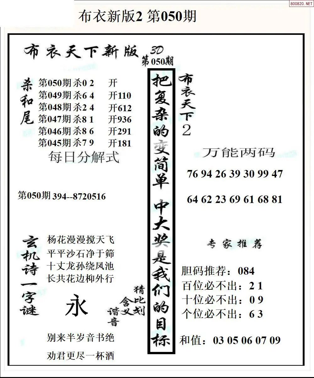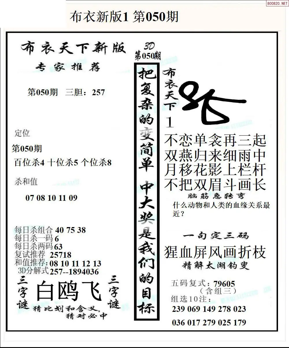 26050期新版3d布衣天下1234