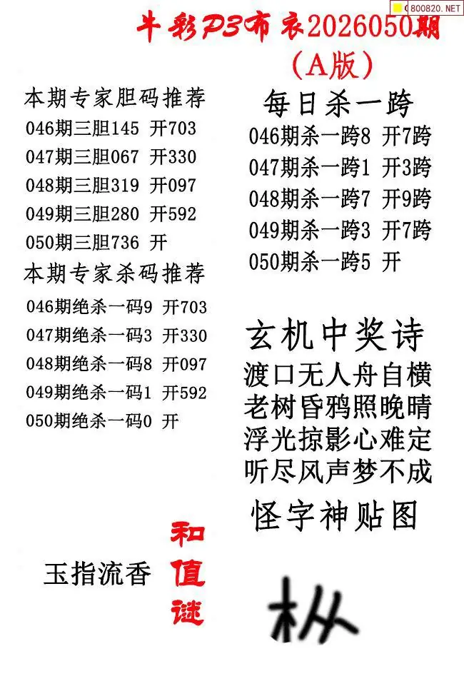 牛彩体彩P3布衣2026年050期AB版图谜(精华版)