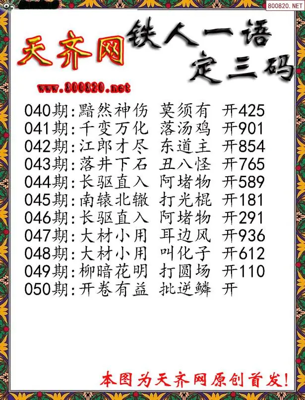 050期3D铁人一句定三码字图谜