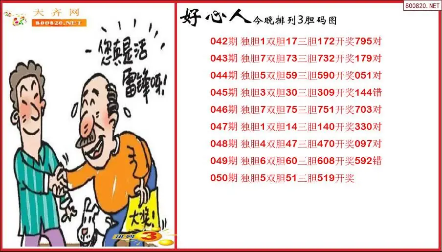 好心人2026050期今晚排列3胆码图(原创)