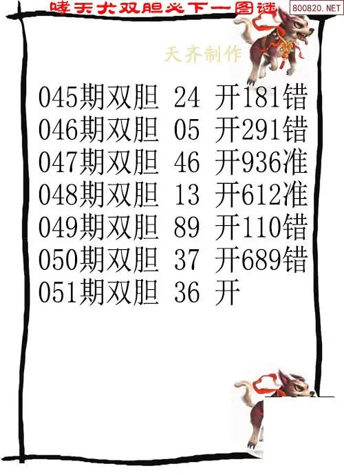 26051期哮天犬福彩3d胆码图-天齐原创