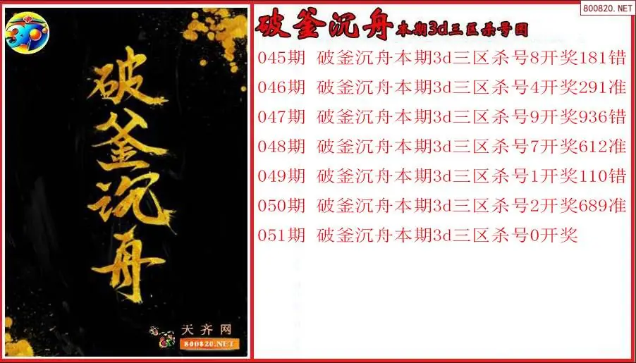 破釜沉舟2026051期本期3d三区杀号图(原创)