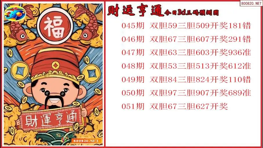 2026年财运亨通051期今日3d三码预测图(原创)