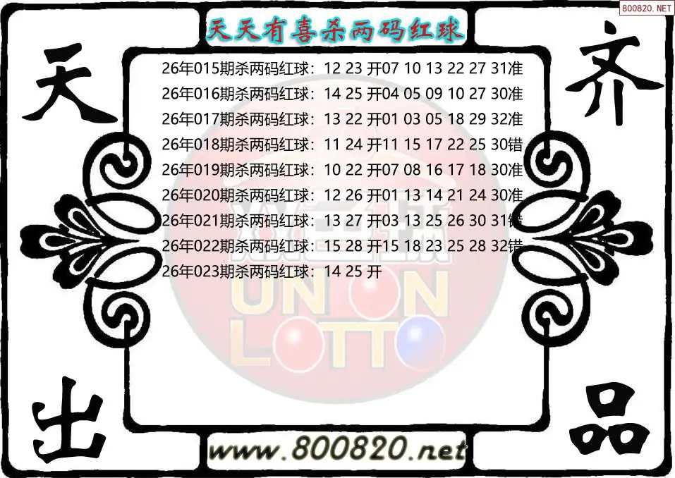 天天有喜26年023期杀双色球红球图迷