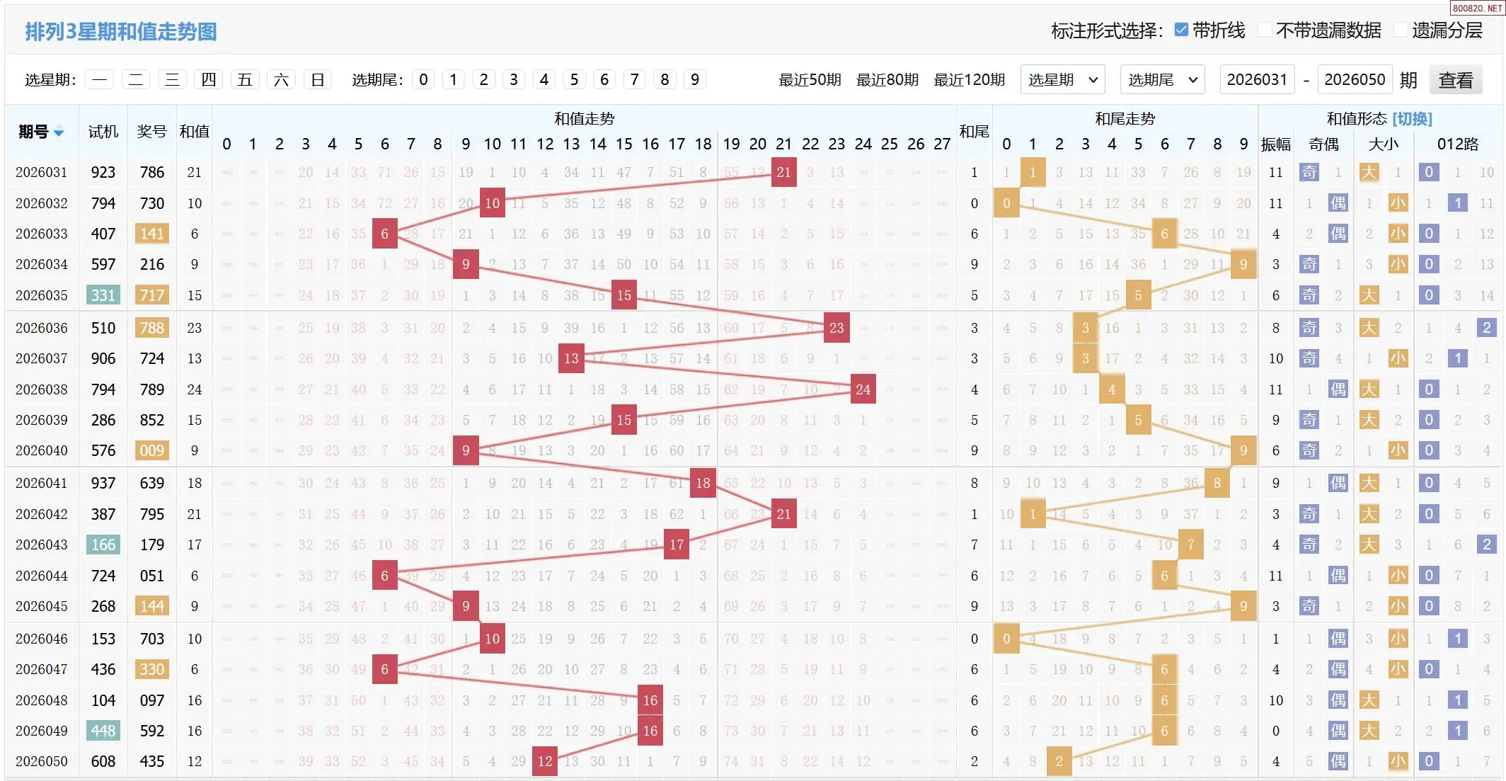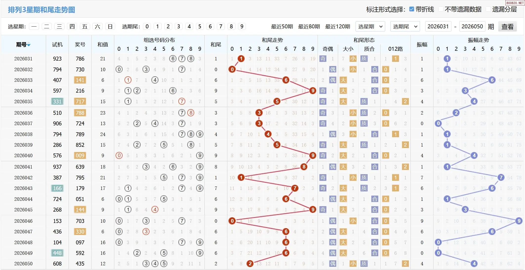 2026051期体彩P3基本走势图如下: