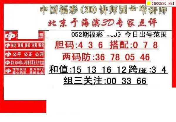 052期于海滨福彩3D专家点评(图迷版)
