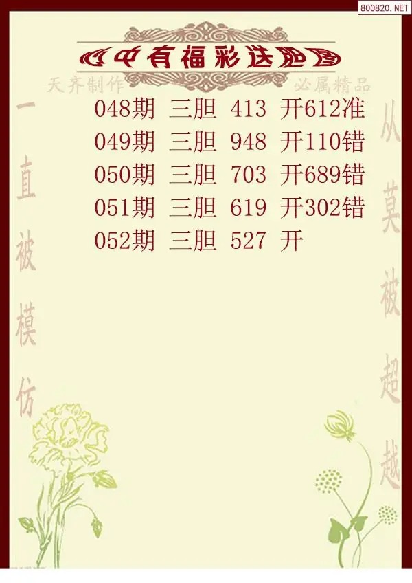2026年052期心中有福福彩送胆图谜(天齐网原创)