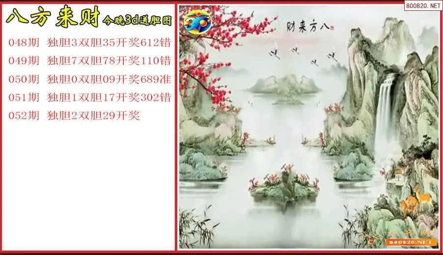 八方来财2026052期今晚3d送胆图(原创)
