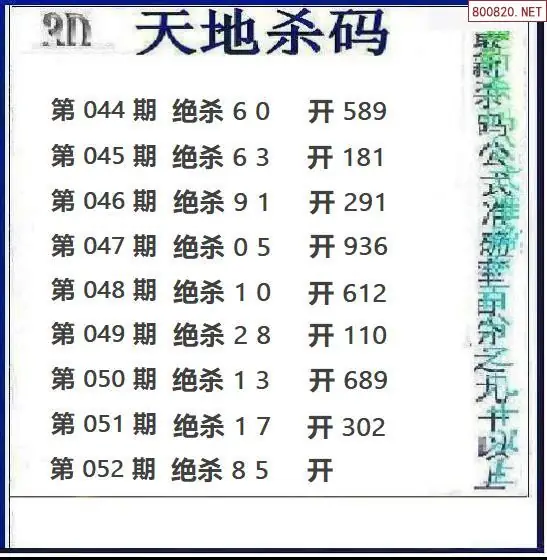 福彩3D052期天地绝杀图谜