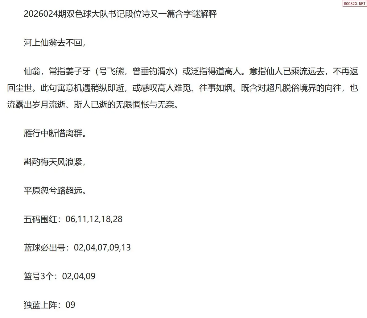 9 双色球26024期牛彩字谜诗迷汇总(天