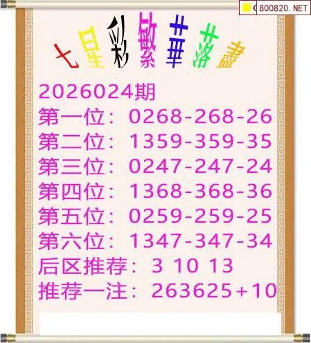 6 2026年024期龟丞相七星彩三码预测