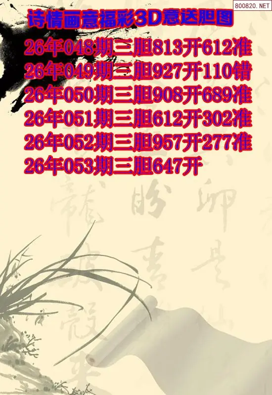 天齐原创3d图谜053期诗情画意三胆图