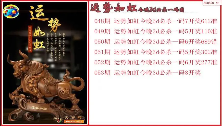 运势如虹2026053期今晚3d必杀一码图(原创)