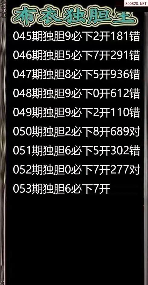 26053期布衣独胆王双胆图谜