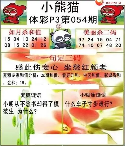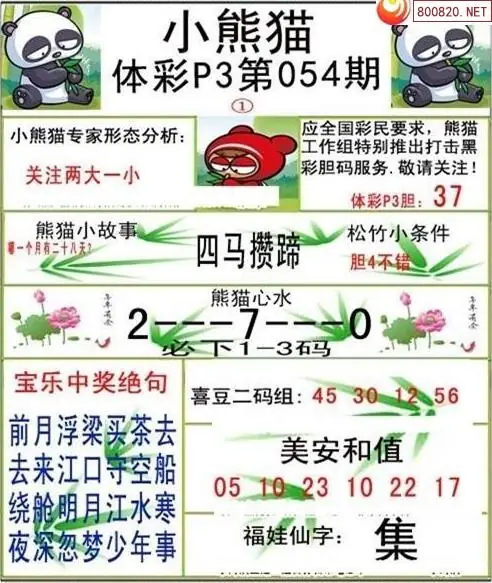 26054期体彩P3小熊猫图迷