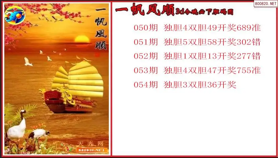 一帆风顺2026054期3d今晚必下胆码图(原创)