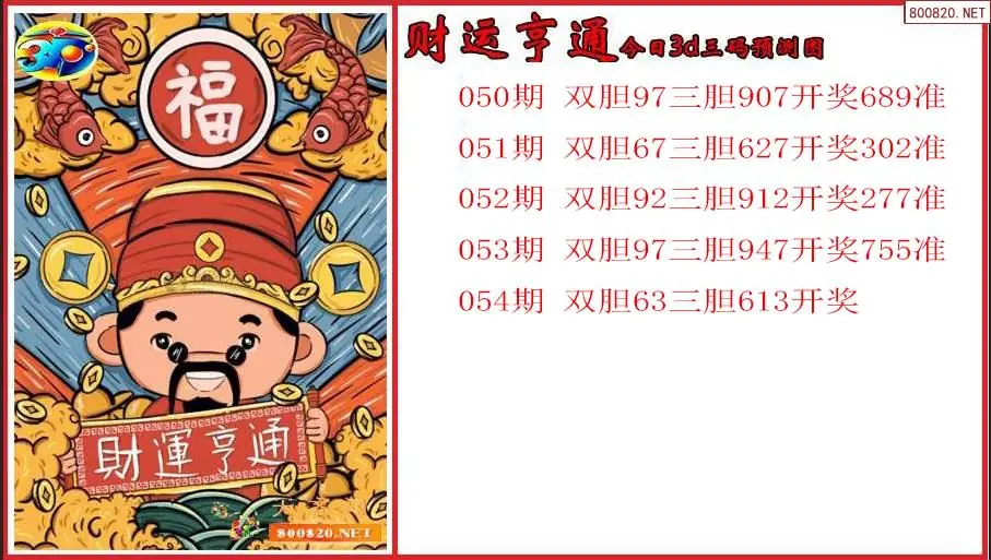 2026年财运亨通054期今日3d三码预测图(原创)