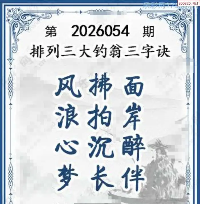 26年054期体彩p3大钓翁三字诀