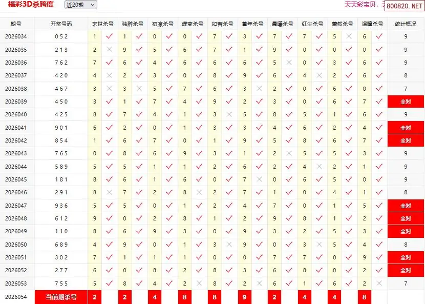 13 2026年福彩3D054期[截杀]杀两跨-原