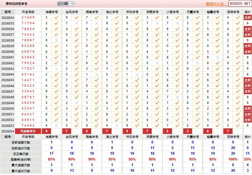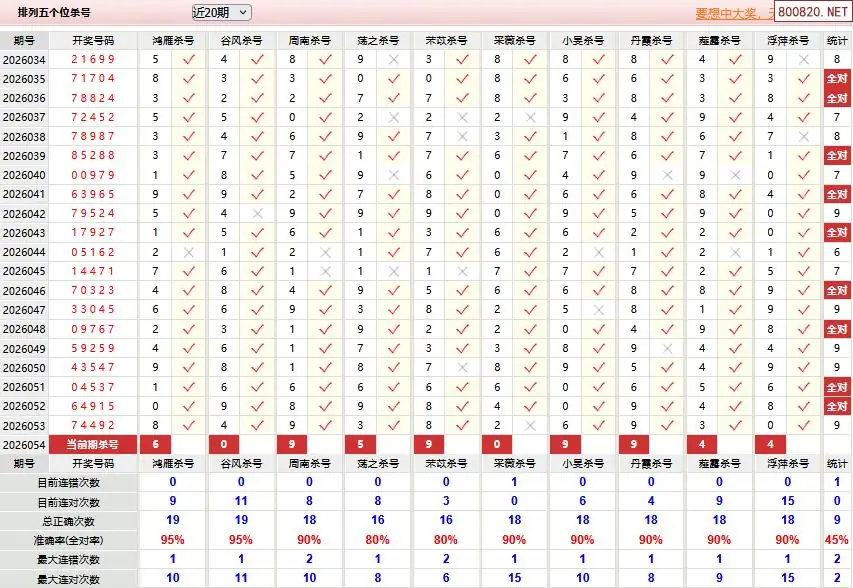 7 体彩P5[老兵]26年054期分析杀两个